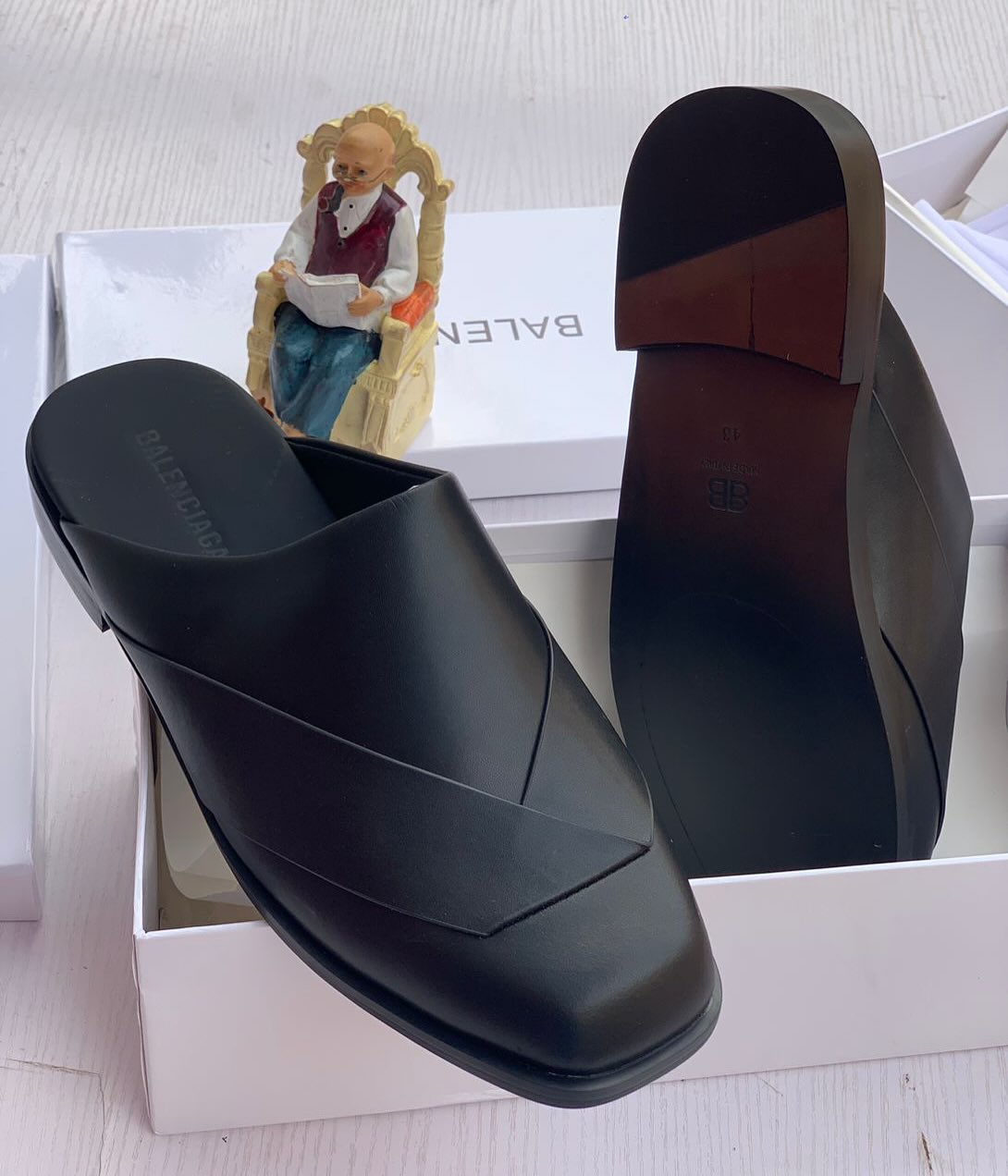 Be the first to review “Balenciaga black leather mules with crossover detail”