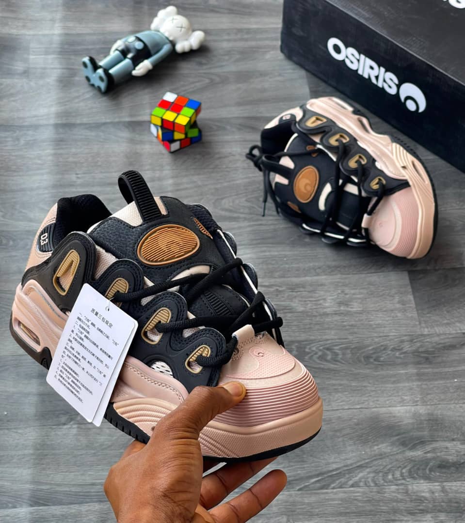 This legendary, high-volume silhouette features a striking black and tan upper accented by bold pink details. Built for maximum durability and impact protection, it features the iconic oversized lace loops and a visible 3/4 helium-filled airbag system for superior cushioning.